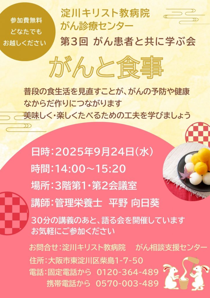9月24日(水)がん患者と共に学ぶ会 開催のお知らせ